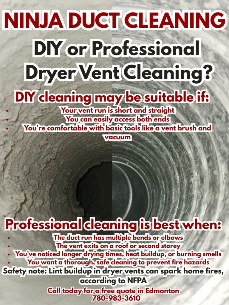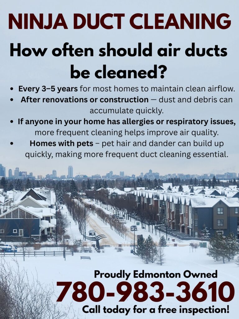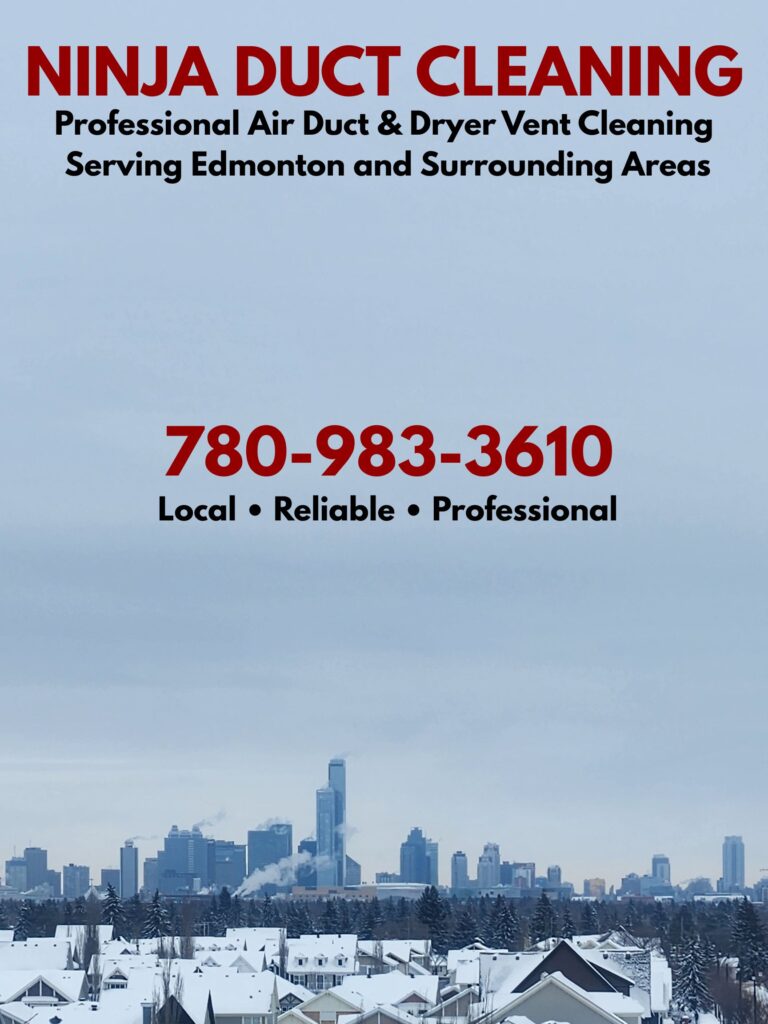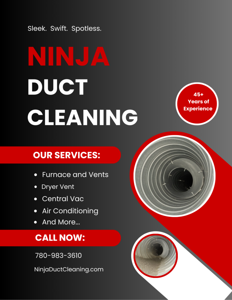 Ninja Duct Cleaning provides professional air duct, dryer vent, and furnace cleaning services for residential and commercial properties in Edmonton and surrounding areas, including St. Albert, Sherwood Park, Spruce Grove, Leduc, and Fort Saskatchewan. Our certified technicians remove dust, debris, and allergens from ducts, vents, and HVAC systems to improve indoor air quality, comfort, and system efficiency. Call today for your free estimate!