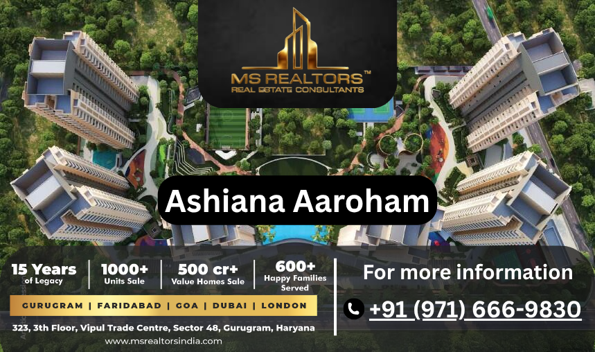 In the midsection, Ashiana Aaroham amenities include a clubhouse, Miyawaki forest, and modern lifestyle features. The project is RERA approved (GGM/1014/746/2025/117) and ensures smooth maintenance services. Ashiana Aaroham price starts from ₹2.99 Cr.*, with flexible payment plan options. Positive review feedback enhances its value. Contact no. available.