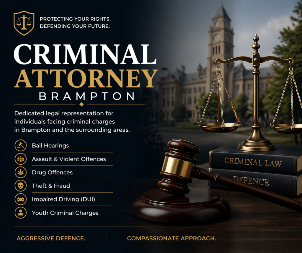 If you’re facing criminal charges in Brampton, having a skilled criminal attorney on your side is essential to protect your rights and secure the best possible outcome. Our experienced team specializes in defending clients against a wide range of criminal offenses, including theft, assault, drug crimes, and more. We offer personalized legal strategies, focusing on minimizing penalties, negotiating plea deals, or challenging evidence to strengthen your defense. With a commitment to your case, we work tirelessly to ensure you receive fair treatment in the legal system. Contact us for a free consultation and start building your defense today.