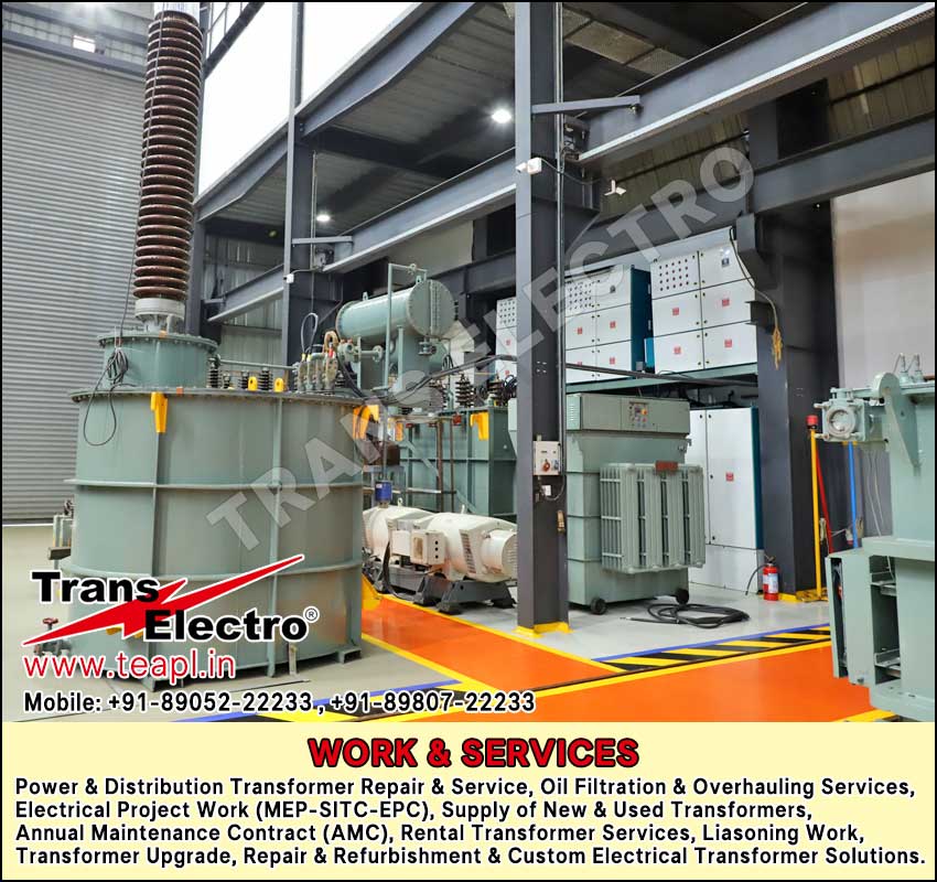 Trans Electro Services includes Power & Distribution Transformer Repair & Service company, Oil Filtration & Overhauling Services company, Electrical Project Work (MEP-SITC-EPC) company, Supply of New & Used Transformers company, Annual Maintenance Contract (AMC) company, Rental Transformer Services company, Liasoning Work company, distribution transformer repair services company, HT transformer repair services company, LT transformer repair services company, transformer AMC services company, transformer breakdown service company, transformer maintenance service company, transformer testing and commissioning company, industrial transformer servicing & Repairs company, on-site transformer repair company, Transformer EPC, MEP, SITC Project company, transformer oil filtration service company, transformer oil purification service company, transformer overhauling services company, transformer oil dehydration service company, transformer oil vacuum filtration company, transformer Mobile on-site filtration company, transformer refurbishment company, electrical transformer oil testing company, NABL-approved transformer oil testing company, industrial transformer oil filtration company, electrical EPC contractor company, MEP electrical services company, SITC electrical contractor company, electrical project work company, turnkey electrical transformer projects company, buy old power transformer company, sell used distribution transformer company, new power transformer manufacturers company, transformer trading company, backup power transformer rental service company, transformer hire services company, power transformer on rent company, Power distribution transformer rental service company, power transformer liaisoning services company, substation liaisoning services company, electrical liaisoning services company, transformer liaisoning work company in India Gujarat Valsad +91-8905222233, +91-8980722233 https://www.teapl.in