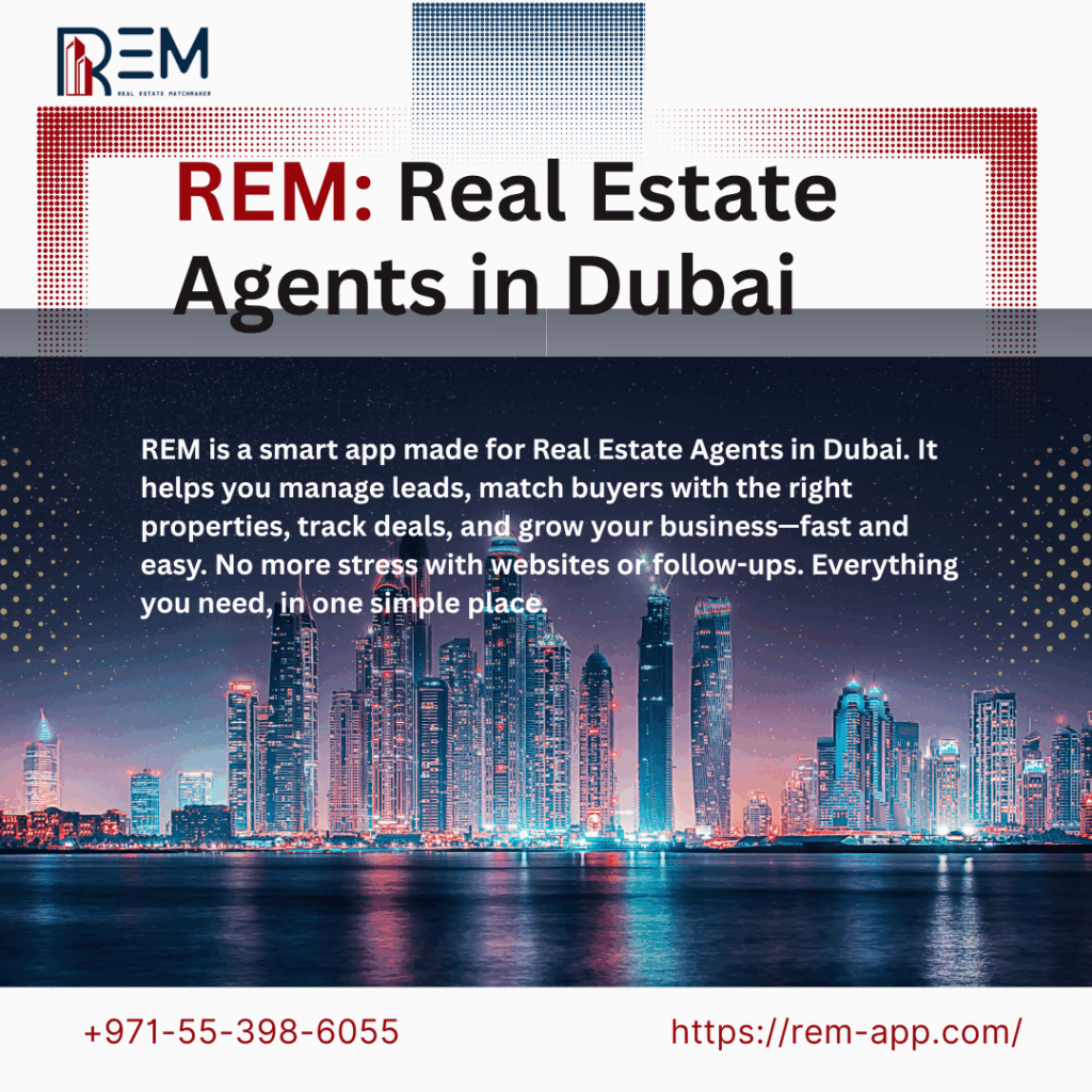 Built for speed and simplicity, REM helps agents and brokers close more deals by using AI-powered matchmaking, automated lead tracking, and easy property management tools. Whether it’s off-plan, resale, or rental listings, REM gives you one clean dashboard to handle everything—from creating virtual tours to syncing with Bayut, Property Finder, and Dubizzle.